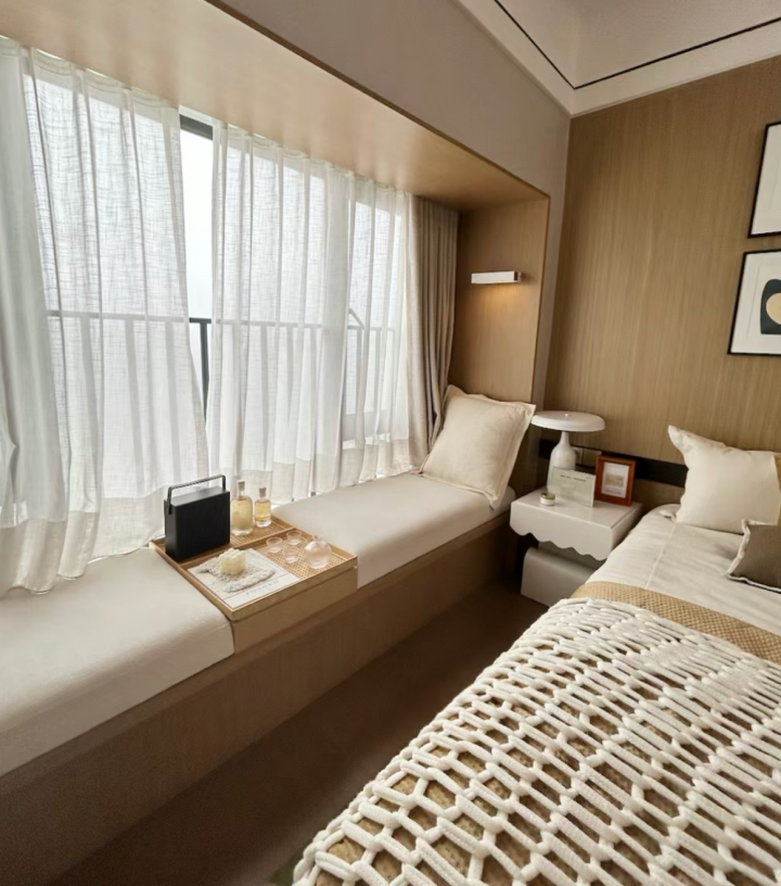 飄窗改造儲物柜:飄窗兩側定制儲物柜,增加臥室收納空間,中間留空擺上軟墊或小桌子,又能化身臥室休閑區。