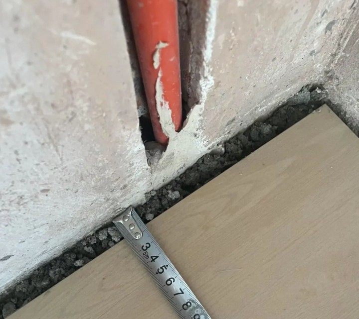7.大廳/臥室的瓷磚距離墻面太遠,會后期踢腳線蓋不住縫隙