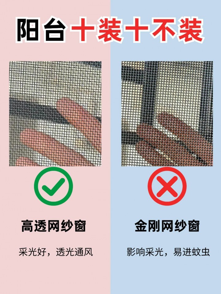 高透網紗窗具有較好的透氣性和透光性,能夠讓陽臺保持通風和明亮。金剛網紗窗雖然安全性能高,但透氣性較差,容易讓陽臺顯得沉悶。因此,選擇高透網紗窗,既能保障安全,又能享受陽臺的舒適環境。