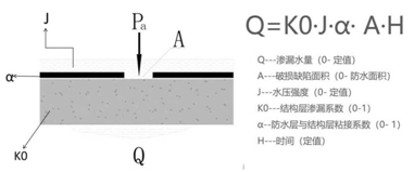 通過達西定律推導出來的建筑滲漏模型(圖1)可知,當防水層與基層無法形成良好粘結時,滲漏量會急劇增加,而基面不堅固,起塵起砂通常也是影響防水材料粘結力的主要原因。
