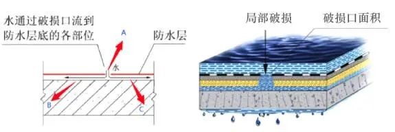 此外,堅固穩定的基層還能幫助防水層更好地抵抗外力的破壞,確保防水層在受到外力沖擊時能更有效地保持其完整性,從而延長防水層的使用壽命和可靠性。就像一張紙懸空時很容易被手指戳破,但如果把紙貼在堅固的墻面上,就不那么容易被戳破。防水層依附于基面,同樣遵循這個道理。