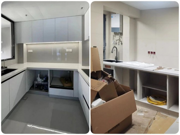 ▲將夾角陽臺與廚房空間打通,延伸定制柜至小陽臺,擴展廚房的儲物空間,也是一個不錯的選擇。然而,這樣會導致衛(wèi)生間沒有獨立窗戶,通風和采光只能依賴廚房,魚與熊掌不可兼得,得失需自行權(quán)衡。