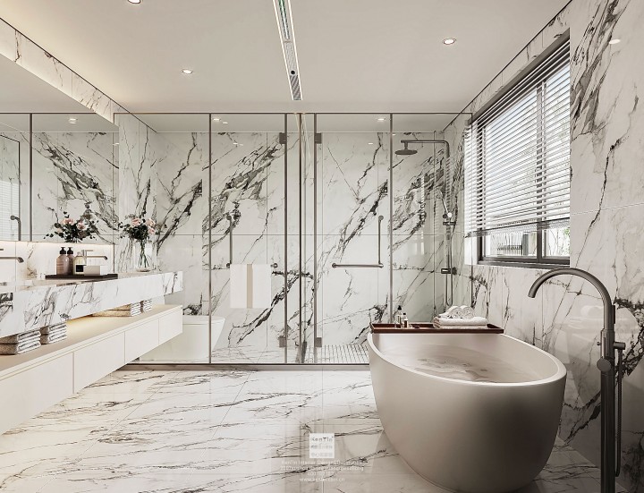 通體磚:從表面到內部材質一致,質地堅硬,耐磨性極佳。其風格較為質樸自然,適合工業風、北歐風等追求簡約、原始質感的衛生間裝修,常用于干濕分離的干區墻面。