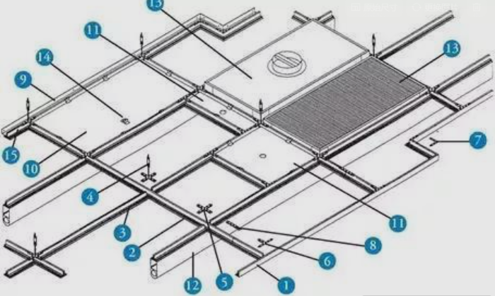 管線避讓設計:安裝前需確認頂面水管、電線管、空調管道等位置,避免龍骨與管線沖突;建議采用 “龍骨繞管” 工藝,嚴禁為遷就龍骨截斷或擠壓管線,防止后期漏水、漏電風險。