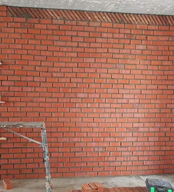 墻體頂部處理:當(dāng)墻體砌至頂部時,要采用斜砌的方式進行收口。斜砌的角度一般為 45° - 60°,這樣可以使墻體頂部與梁或板緊密貼合,避免出現(xiàn)縫隙,同時也能增強墻體的穩(wěn)定性。斜砌的磚塊要逐塊敲緊,并用砂漿填滿磚縫。