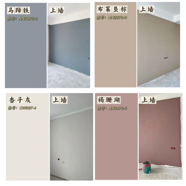 你家是你家,別人家是別人家,千萬不要盲選網紅色!每家的采光條件不同,顏色順著光看和背著光看也完全不同。所以,最適合你家的顏色一定不在色卡上,而在你家里。建議調好色漿,帶到現場調色,小面積試刷滿意后再整面刷,這樣才最保險。