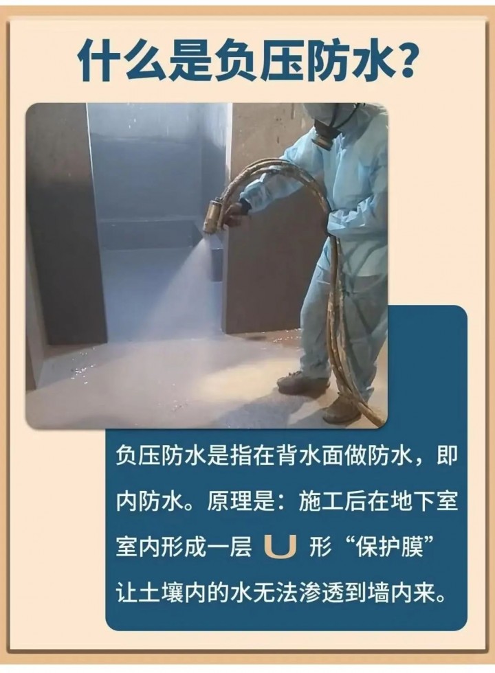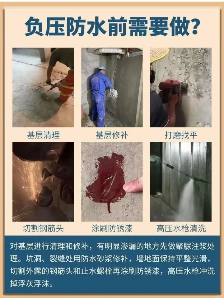 負(fù)壓防水系統(tǒng)是目前應(yīng)對(duì)土壤滲水的有效方案。專業(yè)施工流程包括三個(gè)關(guān)鍵步驟:首先對(duì)基面進(jìn)行徹底清理打磨,確保平整無塵;然后采用丙烯酸鹽灌漿料進(jìn)行帷幕注漿,形成防水帷幕,可使?jié)B漏率降低 90% 以上;最后涂刷三遍負(fù)水壓防霉抗?jié)B膠泥,形成能承受高水壓的堅(jiān)韌防水層。這種內(nèi)防水方式特別適合已建成的建筑,但需注意一旦完成,墻面和地面的防水層就不能被破壞,后續(xù)開槽或安裝柜體必須另砌墻體。