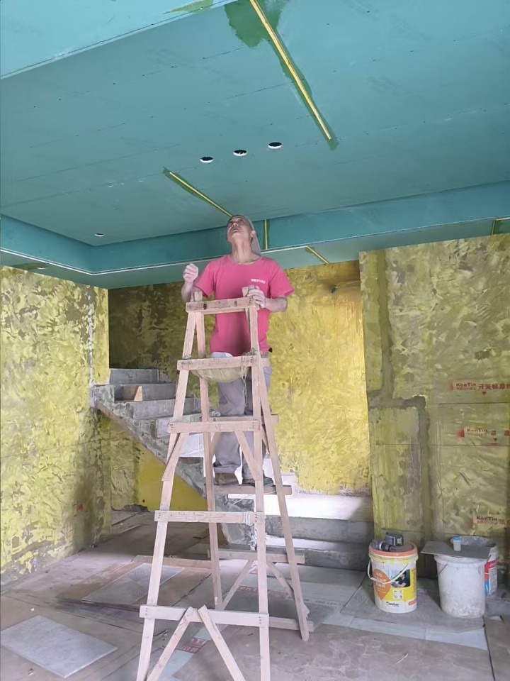 石膏板拼接處是開裂高發區,青庭會采用 “V 型槽拼接 + 嵌縫帶加固” 工藝:先將石膏板拼接處切割出 V 型槽,填入環保嵌縫石膏后,粘貼抗裂嵌縫帶,再進行面層批刮,從工藝上減少熱脹冷縮導致的開裂風險。此外,安裝完成后,青庭還會對吊頂邊緣與墻面銜接處做圓弧處理,既提升美觀度,又避免后期磕碰掉角。
