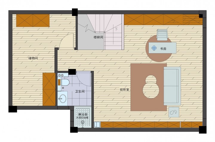 三層設置了影音室和書房,明亮的色彩讓人冷靜思考。