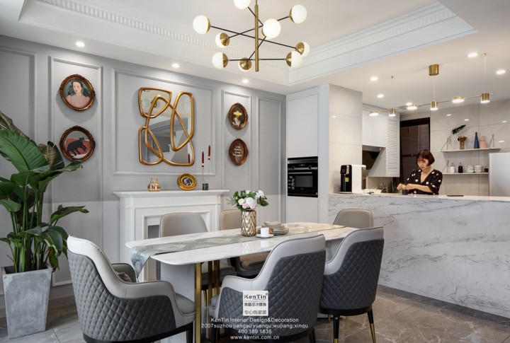 區域的強烈劃分,讓人遐想主人的理性和智慧。而金屬元素的加入,又不顯單調,身份的尊貴感也顯露無疑。