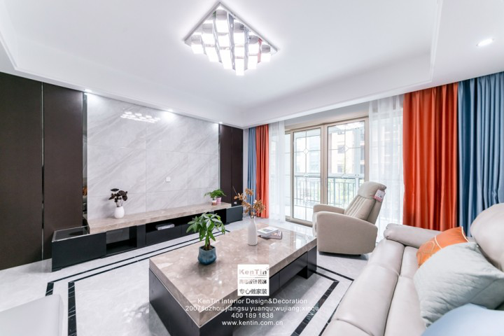 黑白配的設(shè)計(jì),簡(jiǎn)單大方,彩色的窗簾將整個(gè)空間點(diǎn)綴的更加精致。茶幾桌、電視柜上擺放的綠植、裝飾品為空間增添了生的氣息,更加青春洋溢。無論是桌柜,還是沙發(fā)、地板,都非常有質(zhì)感,體現(xiàn)了主人不俗的品味。