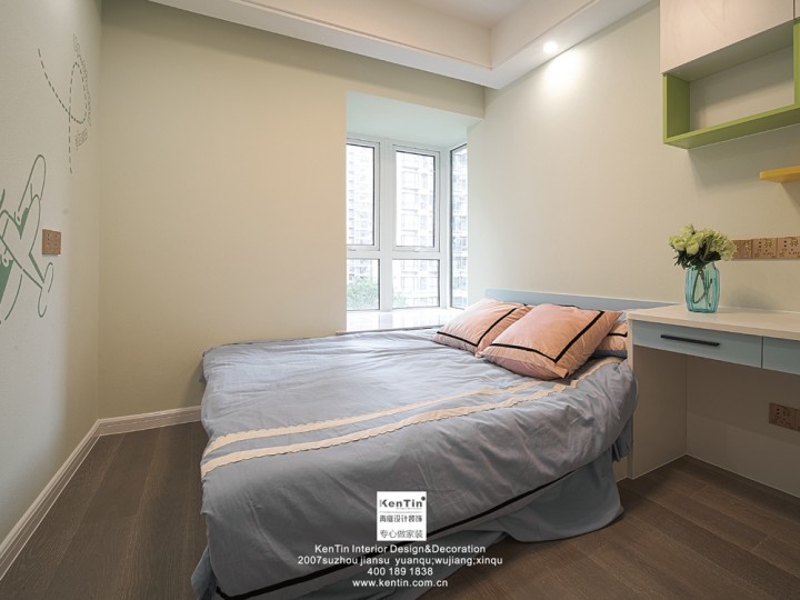 兒童房不同于其他案例中色彩感較強的空間。本案的兒童房以鵝黃色為底色,溫馨明亮,墻面的飛機等畫作也有一定的幻想性。童年的世界不僅多彩,且簡單。