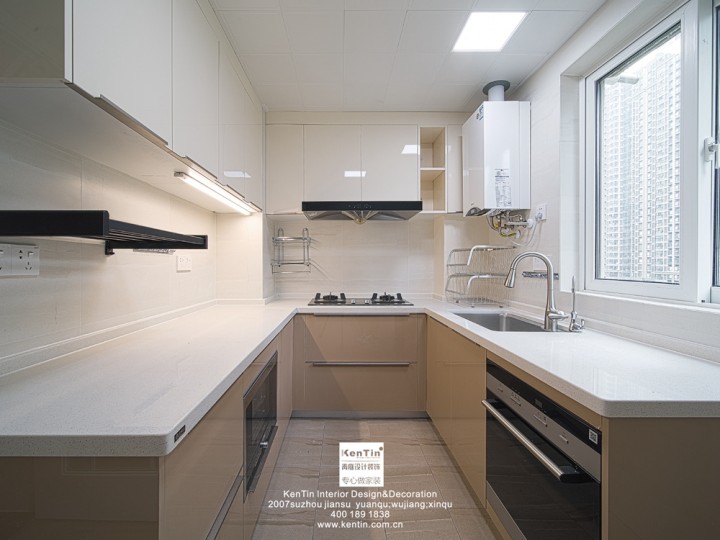 廚房切洗區在窗戶旁,光線充足。廚房的收納空間和配備非常齊全,蒸烤煮炒都可操作。