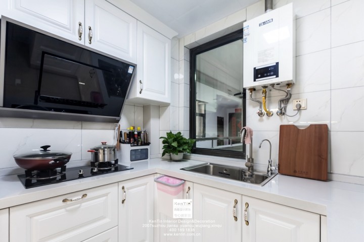 廚房空間呈U字型分布,面積雖小,但并不擁擠,切洗區,烹飪區,蒸煮區每一個物件的處理都井井有條。媽媽的廚房,自帶美味。