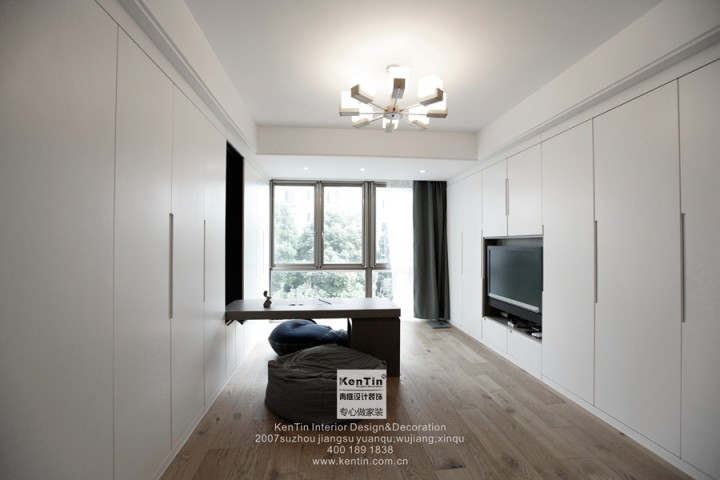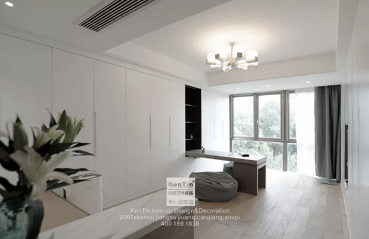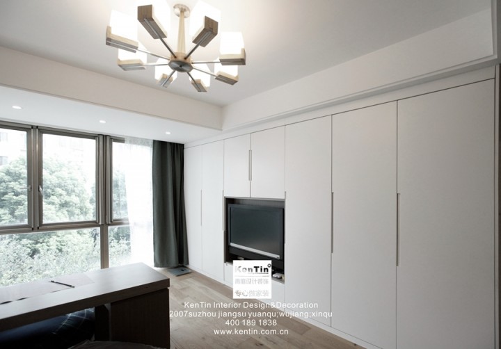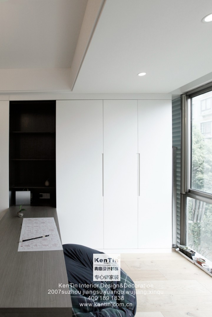整個舊房改造的工程量非常大,主臥從地板到床、衣柜的樣式,從整體上重新搭配了一番,畢竟20年前的裝修風格已滿足不了現代人的審美觀。主臥室給人一種溫馨、素雅的感覺,大面積的運用木質原色,搭淺紫色的床品,展現出一個自然、舒適的空間。左右兩側的臺燈簡潔而又精致,頂天立地的衣櫥盡量避免了頂部的空隙,以防后期淤積灰塵難以清理。周末的時候可以窩進被子里,沉浸在一本書的故事情節里,貪戀著一束燦爛的晨曦,消磨掉一段大好時光,如此便好!