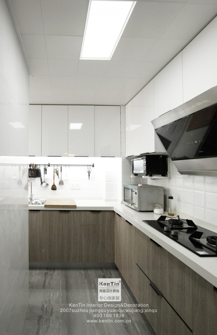 空間雖然不大,但設備齊全,且不占空間。原木色櫥柜與白色臺面的搭配,清爽自然,幾個大抽屜造型櫥柜給人舒適的取物習慣。高地板面設計,讓廚房的使用更加人性化,從洗菜、切菜、炒菜一系列活動讓手臂和腰隨時保持最舒適的狀態。很多時候,廚房的樣子,就是未來生活中的樣子。身臨其境,才知曉其中的震撼,這不是光靠眼睛看效果圖就能感受到的。常有煙火氣蒸騰的廚房,就是生活的小幸福。