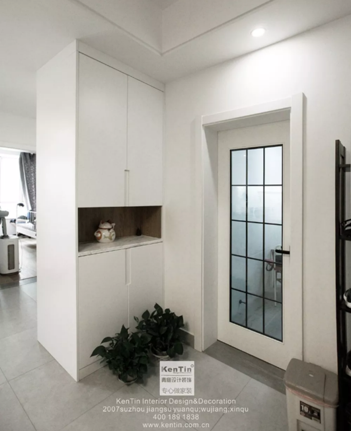 【技能get√】由于玄關的面積小,所以平時看起來會有些局促黑暗。可以通過適當的吊頂,來增加玄關的光線或者改善它的空間比例。
