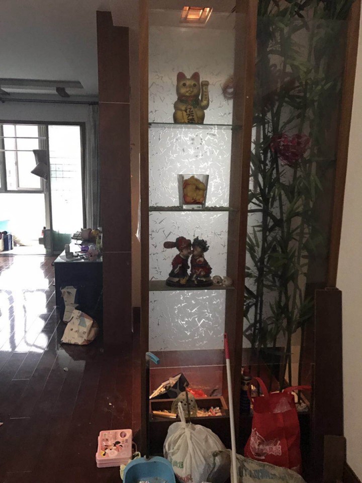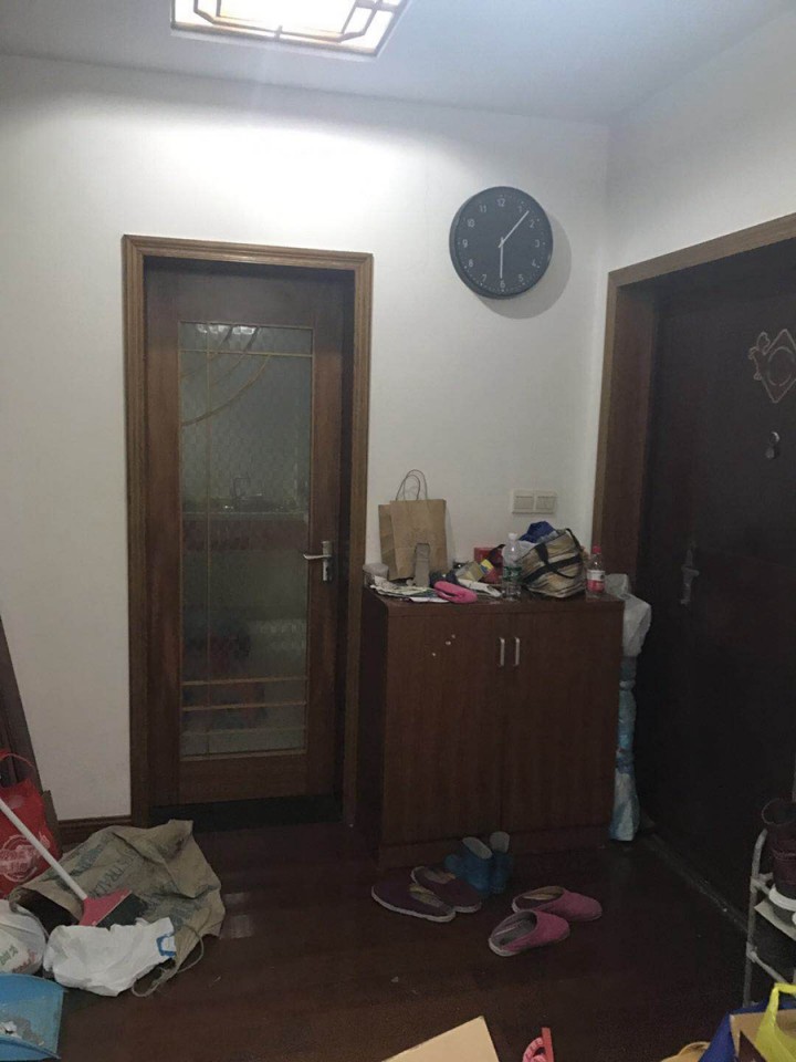 進門處鞋柜顏色古老而深沉,沒有一點年輕的朝氣,上面擺滿了鞋子、袋子、瓶子等各種舊物。門口的玄關柜,因為垃圾和孩子亂扔的水彩筆,顯得很雜亂。