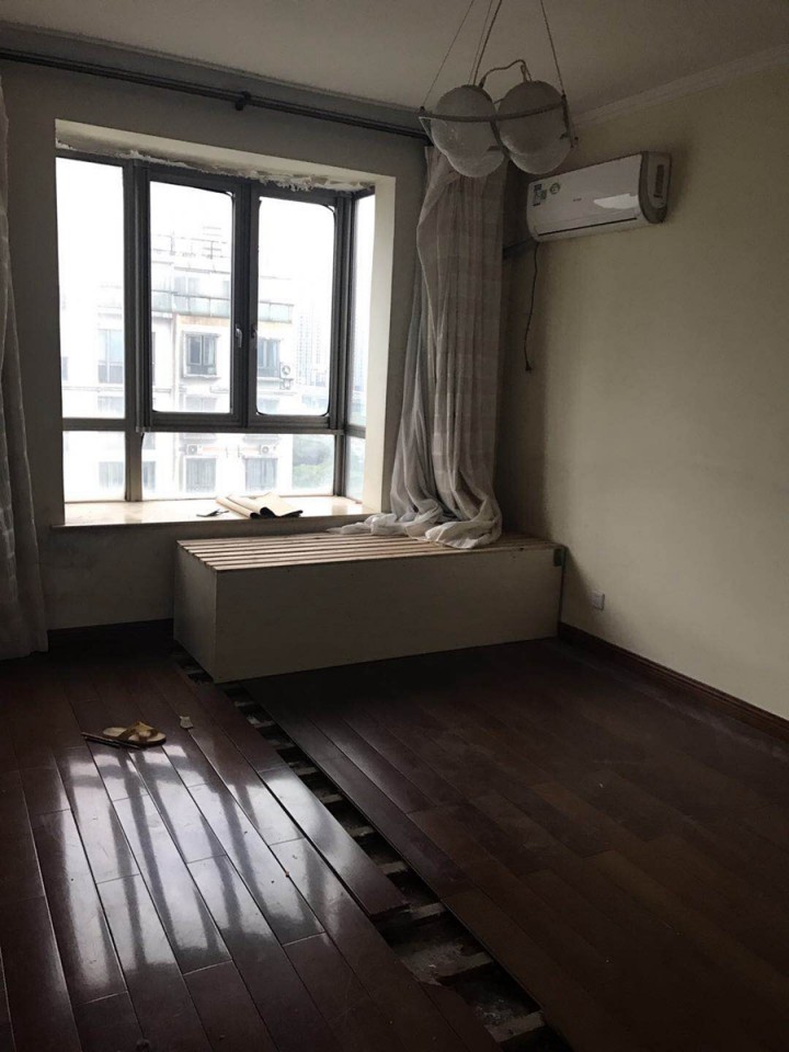 老式的隔斷,銹紅的木地板顏色散發著十年前裝修的味道,光線不是很好。