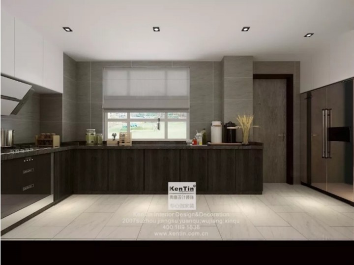 顏色劃分十分明顯的廚房,給人的第一感覺(jué)就是干凈簡(jiǎn)潔,顏色從上到下由淺及深,過(guò)渡非常和諧。廚具和調(diào)味料擺放十分整齊,愈發(fā)顯得廚房空間寬敞明亮。置身其中,可以美美的制作一頓美味的晚飯。