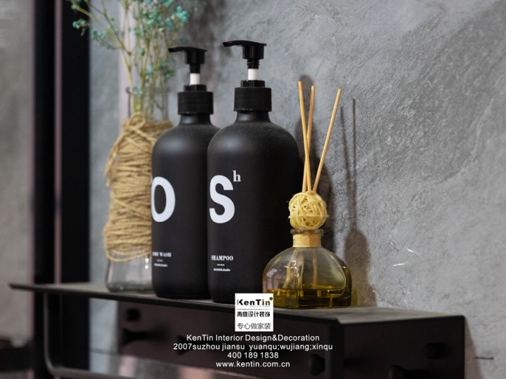 洗手臺(tái)的外側(cè)用音樂播放界面作為裝飾,記錄著對(duì)業(yè)主有紀(jì)念意義的歌曲。每次路過這里,新家主人的心里想必也充滿甜蜜和幸福。