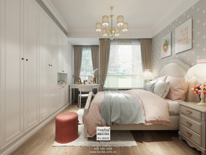 兒童房功能強大,層次豐富。用浪漫的窗簾分隔出不同功能區,打造一個相對安靜的學習空間。