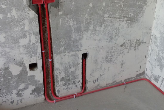 冷熱水管過墻要單獨打洞,布管時兩者間距不小于15mm,這是青庭鋪設水管的施工標準之一。