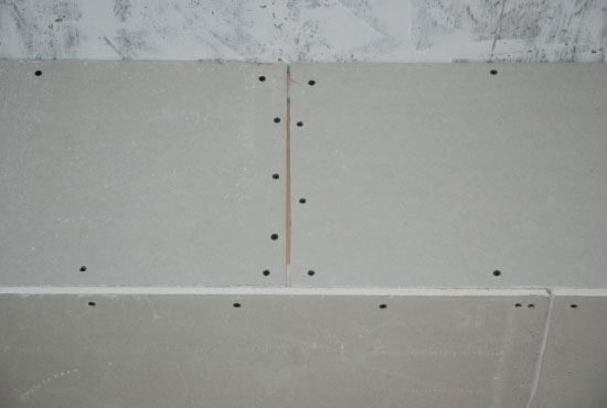 石膏板底板托側板,短邊拼縫應錯開,接縫應留5mm左右空隙。