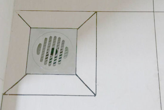 地漏與地磚之間粘貼牢固,無裂縫掉角,留邊寬度一致。