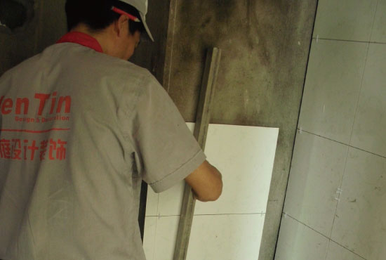 瓷磚鋪貼采用墻磚壓地磚的施工工藝。