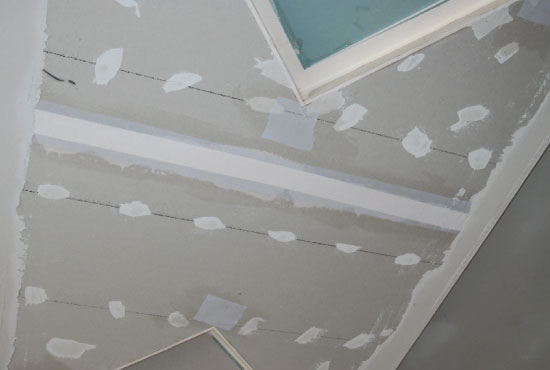 石膏板接縫處用紙繃布連接,嚴控開裂現象的發生。